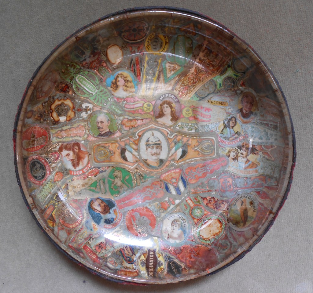 The Oddest Category item from the Reitz Home Museum is this late 19th century cigar band bowl. “These bowls were popular in the late Victorian Period. They were made with cigar bands glued to the back of a clear bowl. This bowl features Kaiser Wilhelm II of Germany. Prince George of England is also found on one of the cigar bands. It is believed the Wilhelmina Reitz was named after Kaiser Wilhelm I. (5” diameter x .5” deep).” It is uniquely Victorian—not many have seen such a piece.