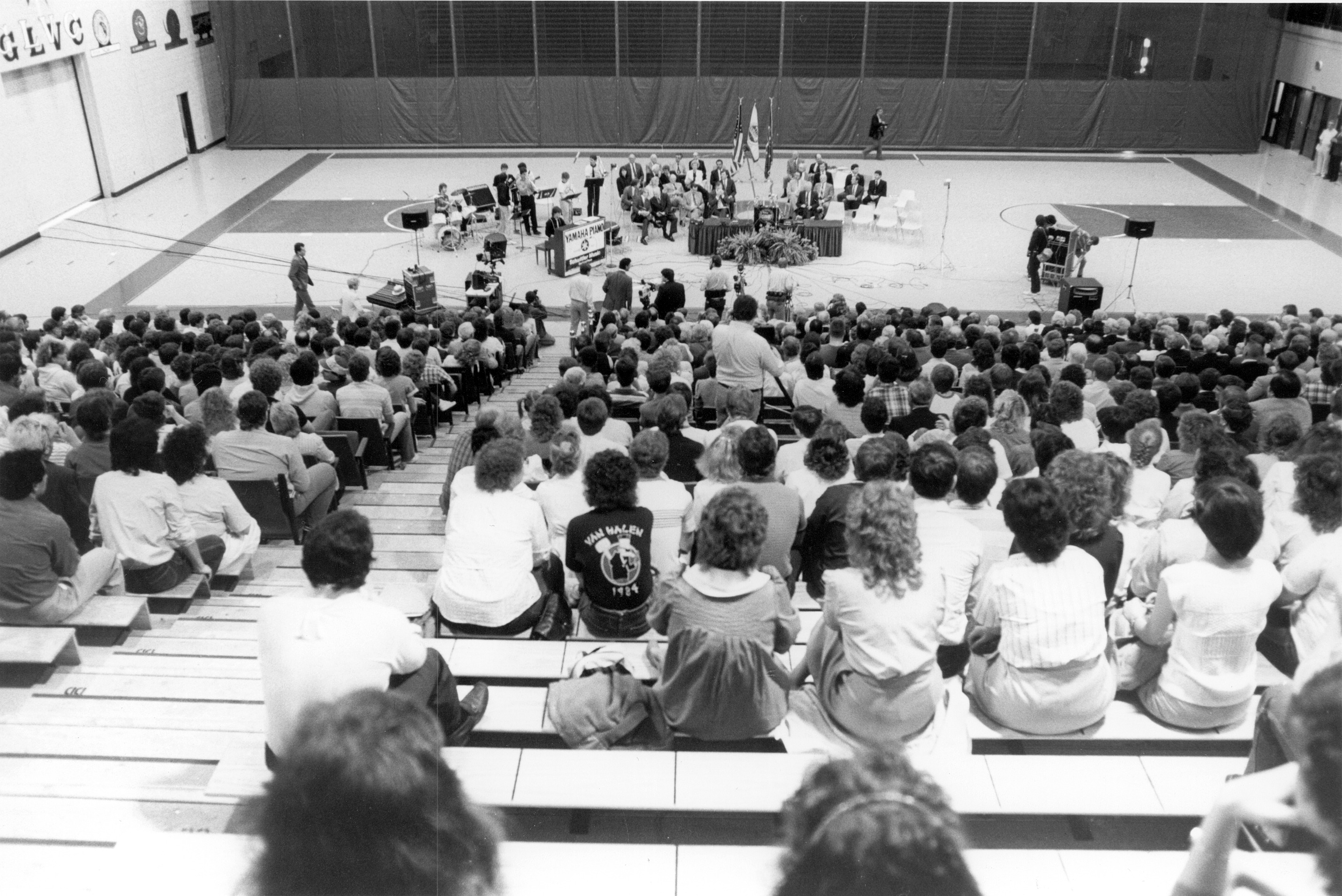 After a long-awaited journey for independence, the Indiana Education Committee voted on Senate Bill #207. The committee passed the bill, 7 to 3. ISUE would finally be granted independence. The ISUE campus and Evansville community held an unprecedented celebration. On April 16, 1985, ISUE become USI: Governor Orr signed the independence bill in the Physical Activities Center (PAC) in front of 1,500 people (Harper, 1985). After the bill signing, Archie the Eagle had a ball and chain on his ankle: in front of a large crowd, the ball and chain was symbolically cut, symbolizing his newly gained “independence”.