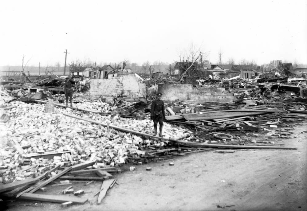 Once the tornado crossed the Wabash River, it moved north and struck the town of Griffin. Photographs from the Don Blair collection at the University Archives and Special Collections at the University of Southern Indiana show the tornado’s destructive power in Griffin. The town was destroyed, and the residents of Griffin had to rebuild. The tornado did not last much longer: by 4:30 PM, the tornado dissipated in Pike County, Indiana.