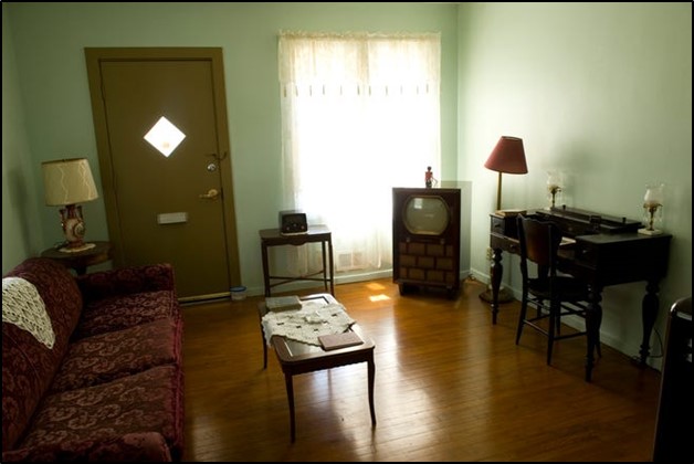 The final family moved into its apartment on December 20, 1938. In total, 509 applications were received, 262 approved. Tenant annual incomes ranged from $584 to $1,407, with 39.8% of families representing WPA employment (xix). Although not without its naysayers, Lincoln Gardens was well regarded when it was established, but fast forward through the decades and this is no longer the case. By the 1990’s it had fallen into disrepair, and eventually all but one unit was demolished. That unit was upgraded and remodeled into the Evansville African American Museum. Within the museum is a full-size model of one of the apartments: living room, bedroom, and kitchen. The full text of the historical marker reads: “African Americans settled in Evansville in the early 1800’s and established a vibrant community here in Baptisttown by 1890. Segregation and discrimination led to a section of overcrowded, dilapidated buildings. With citizen support, city officials applied for New Deal funding to clear part of this area in the 1930s and develop a federal housing project, Lincoln Gardens. Opened in 1938, Lincoln Gardens provided low-cost housing managed by and for African Americans. During World War II, occupants started a club for African American service members barred from the local USO. Lincoln Gardens served as a community center for decades. Saved from demolition, this building opened as the Evansville African American Museum in 1999.”