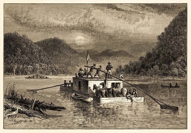 On January 8, a successful attempt was made to chop a path out into the main channel of the river, and the Boatload was once again underway. They stopped in Cincinnati on January 17 where they toured a museum and heard a lecture, and again stopped in Louisville on January 19. Finally, they reached Mt. Vernon, Indiana on January 23, where some disembarked for a wagon ride to New Harmony the next day, but others remained on board and went further downstream to the Wabash River, then up the Wabash to New Harmony itself.