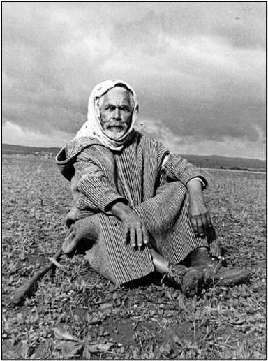 McCutchan served as Company Clerk with the 335th Engineer Regiment. He was ‘behind the lines,’ i.e., arriving in a location after the Germans had been defeated and the location at least somewhat secured. He and his fellow soldiers arrived in North Africa April 13, 1943, and spent most of the time through January 7, 1944 in Tunisia. He was as interested in the local area and peoples as he was in the military experience, and frequently commented on how eager the children were to be around the soldiers. Whenever the unit stopped for lunch, they gathered around to get the leftovers from C rations: sugar cubes, hard candies, and little packets of soluble coffee. No matter how desolate the area appeared, the children always appeared, seemingly from out of the bushes and rocks. This photograph of an old shepherd demonstrates that it was not only the children who took advantage of the soldiers’ largesse—if you look closely, you will see that he is wearing GI shoes!