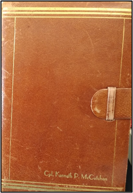 Kenneth Peva McCutchan (1913-2002) was a historian at heart. His family was part of the early history of Evansville and Vanderburgh County, and the section of northern Vanderburgh County called McCutchanville is named for his family. Ken McCutchan had ample reason to appreciate history and value of good recordkeeping. This is demonstrated by his World War II journals and a scrapbook of his time serving overseas. The journals begin with this entry on July 15, 1942: