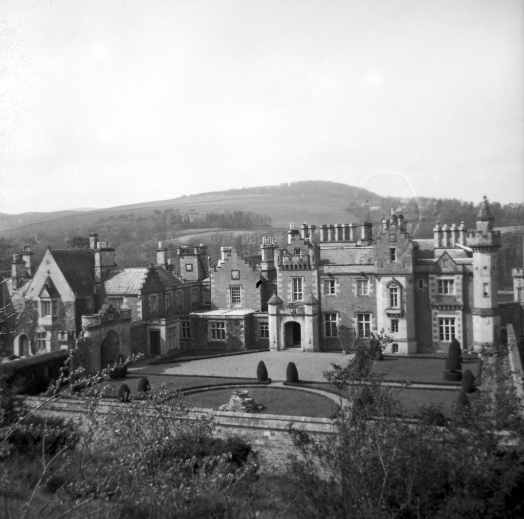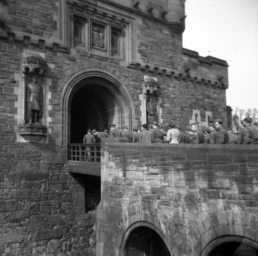 From Paris he went to Edinburgh and toured Edinburgh Castle and other city sites, and spent a day in Sir Walter Scott country. Edinburgh Castle, pictured left, was “perched on a high formidable rock in the very center of the city. One of the most interesting rooms at the castle was the great banquet hall where all coronation banquets for centuries have been held. The guide explained that one of the most colorful ceremonies of the coronation banquets was the challenging, in which a knight in full armor rode a horse into the dining hall and challenged the guests in the name of the newly crowned king. The great hall is lined with suits of mail and weapons of all eras, as well as portraits of all the kings and queens of Scotland and England for centuries.” Pictured here is the drawbridge entrance.