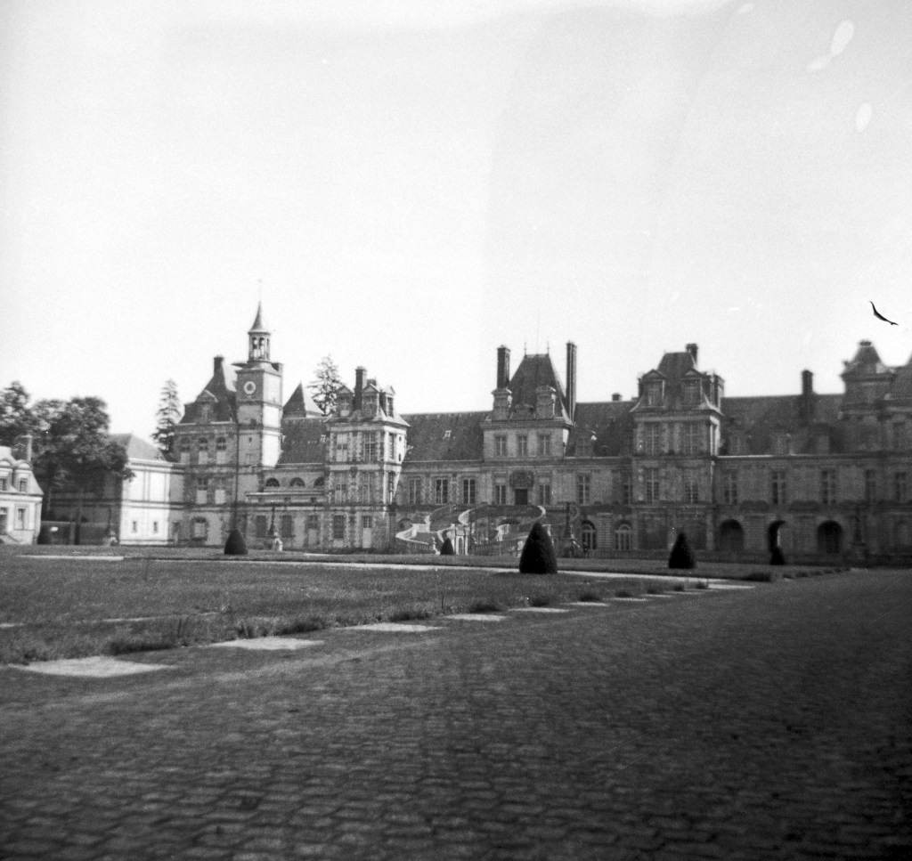 Another day Mlle. Durand took her class to see Fountainbleau. “The palace is built on the location of a hunting lodge that King Louis VII had built in the heart of a forest. Legend says that here was a spring of fine clear water (La Fontaine Belle-eau) where the king stopped to quench his thirst after the chase. …The horse-shoe staircase at the main entrance is particularly interesting. It was from these steps that Napoleon said good-bye to his officers before he went into exile.”