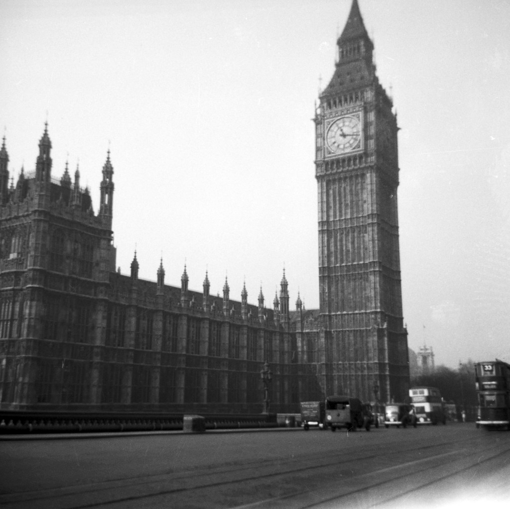 Then to London for 3 more busy days: Madame Tussaud’s Wax Museum (“very weird because some of the figures are so real that you are not sure who is alive and who isn’t), St. Paul’s Cathedral (just the outside since it was very crowded for the memorial service for the recently deceased Franklin D. Roosevelt), Parliament, Westminster Abbey, London Bridge, Tower of London, Kew Gardens, and Buckingham Palace (for the changing of the guard). This is Big Ben and Parliament as viewed from Westminster Bridge.