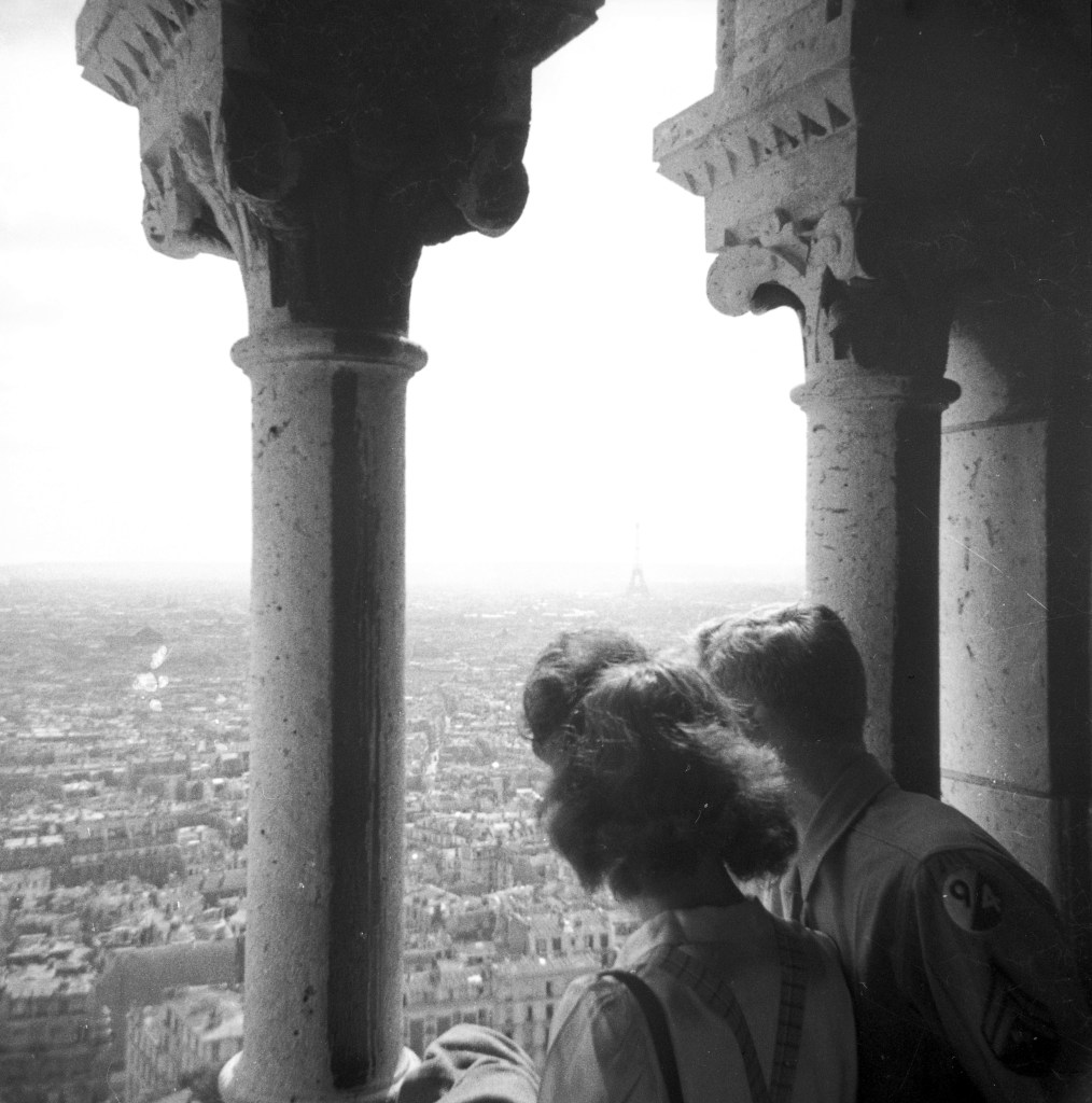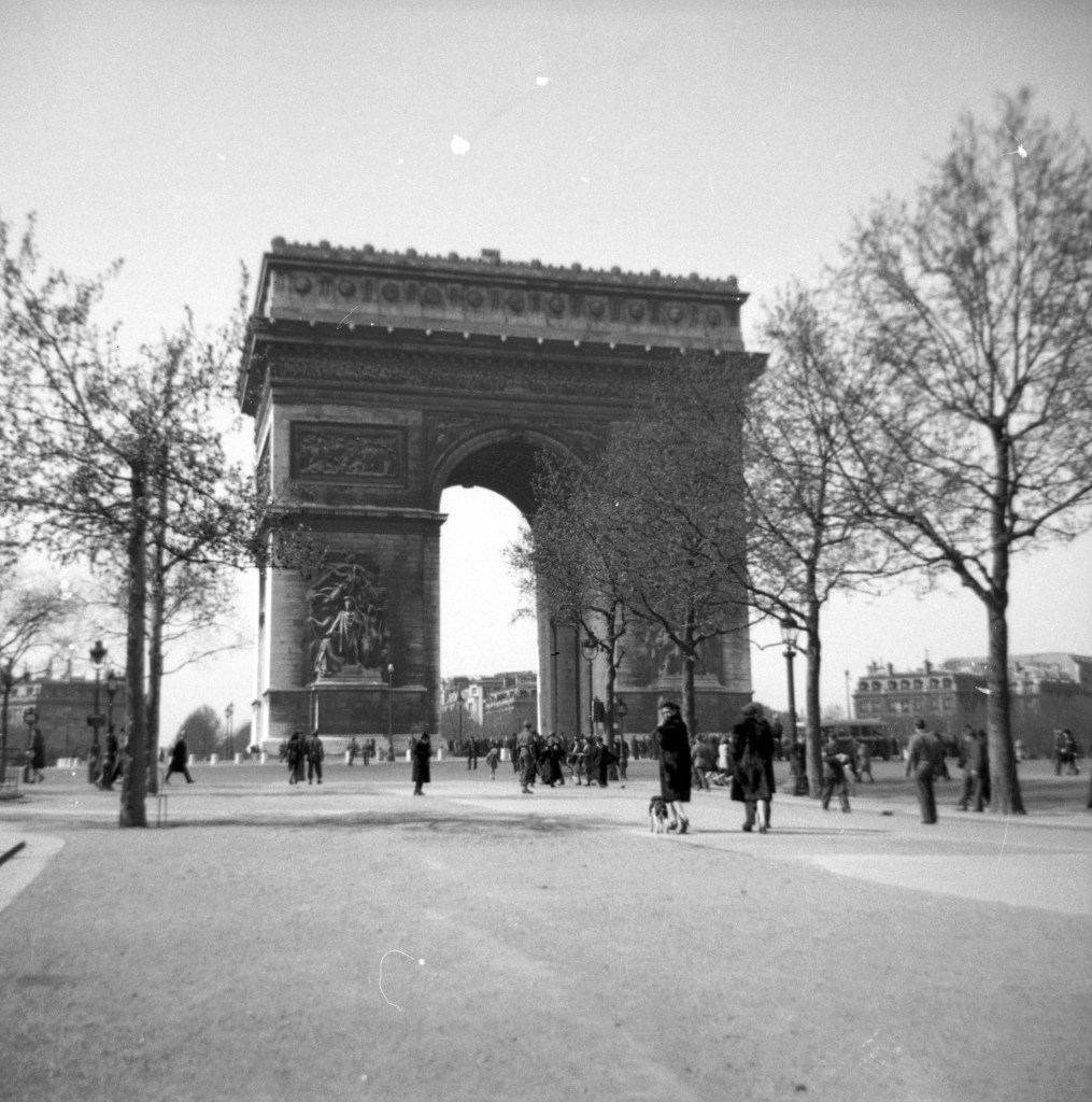 On March 30, 1945 they moved into Germany. On April 5 he received word that his 2-week furlough to Great Britain had been approved, and so began his first opportunity to truly play the tourist. On April 8, he arrived in Paris and made the most of every minute, enjoying Notre Dame, the Arc d’Triomphe, and the quintessential Parisian attraction, the Eiffel Tower. (seen respectively below)