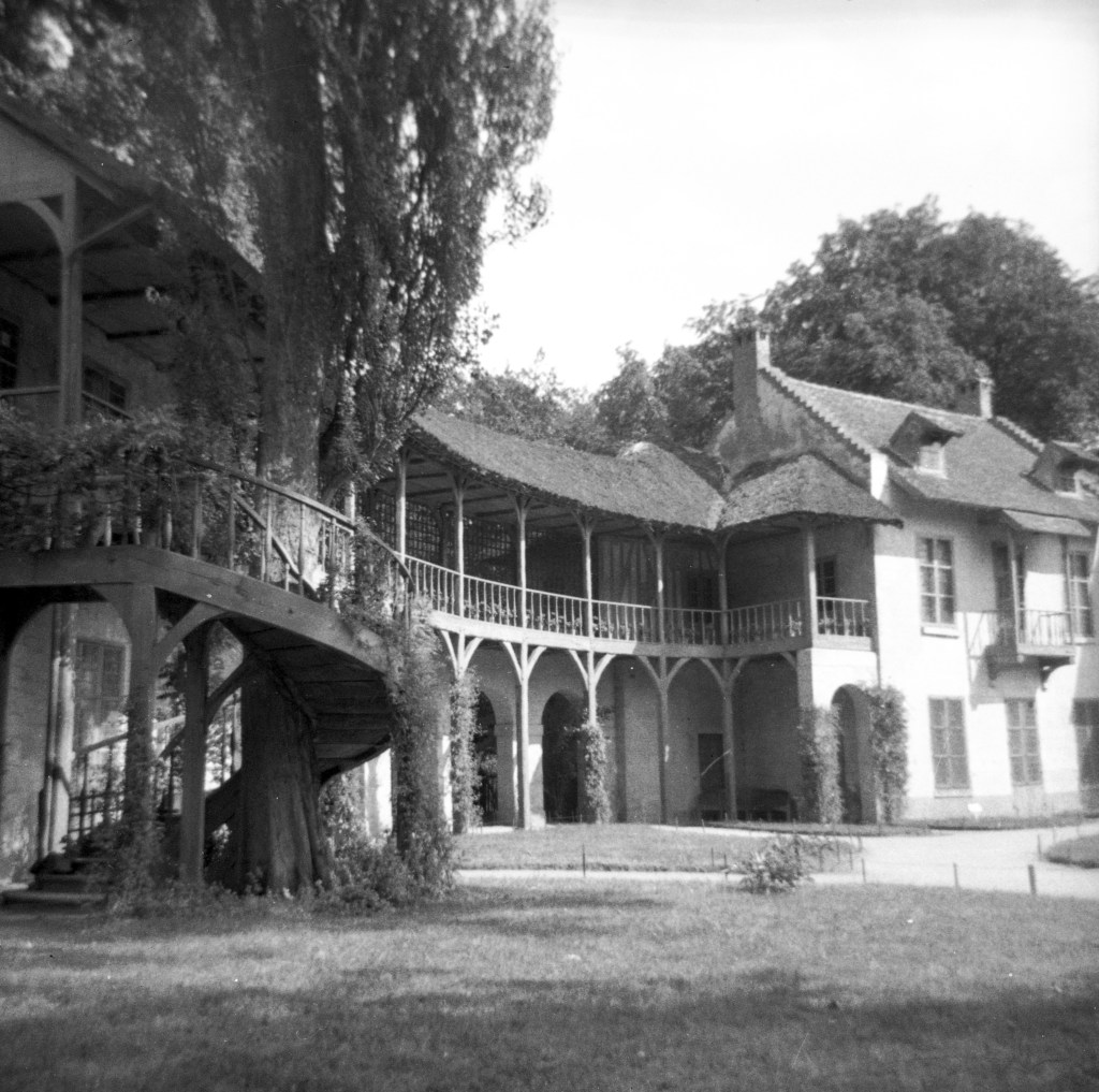 Another day the class went to Versailles. It “is so large that it is said that at no one spot can one get a view of the entire building. The façade on the garden side is 2,413 ft. During the reign of Louis XIV the court, including nobles and servants, numbered nearly 10,000 persons.” Marie Antoinette built an entire idyllic rural village, the Hamlet, with a mill, mill pond, cow barn, and buttery. She built a house for herself there, too, when “she felt the need to ‘get away from it all’ and bake bread and make butter with her own hands. When she had the Hamlet constructed in 1783, people began to accuse her of ruining France with her caprices. Much unsavory gossip also rose against her because she refused to admit people of the court to her pastoral retreat.”