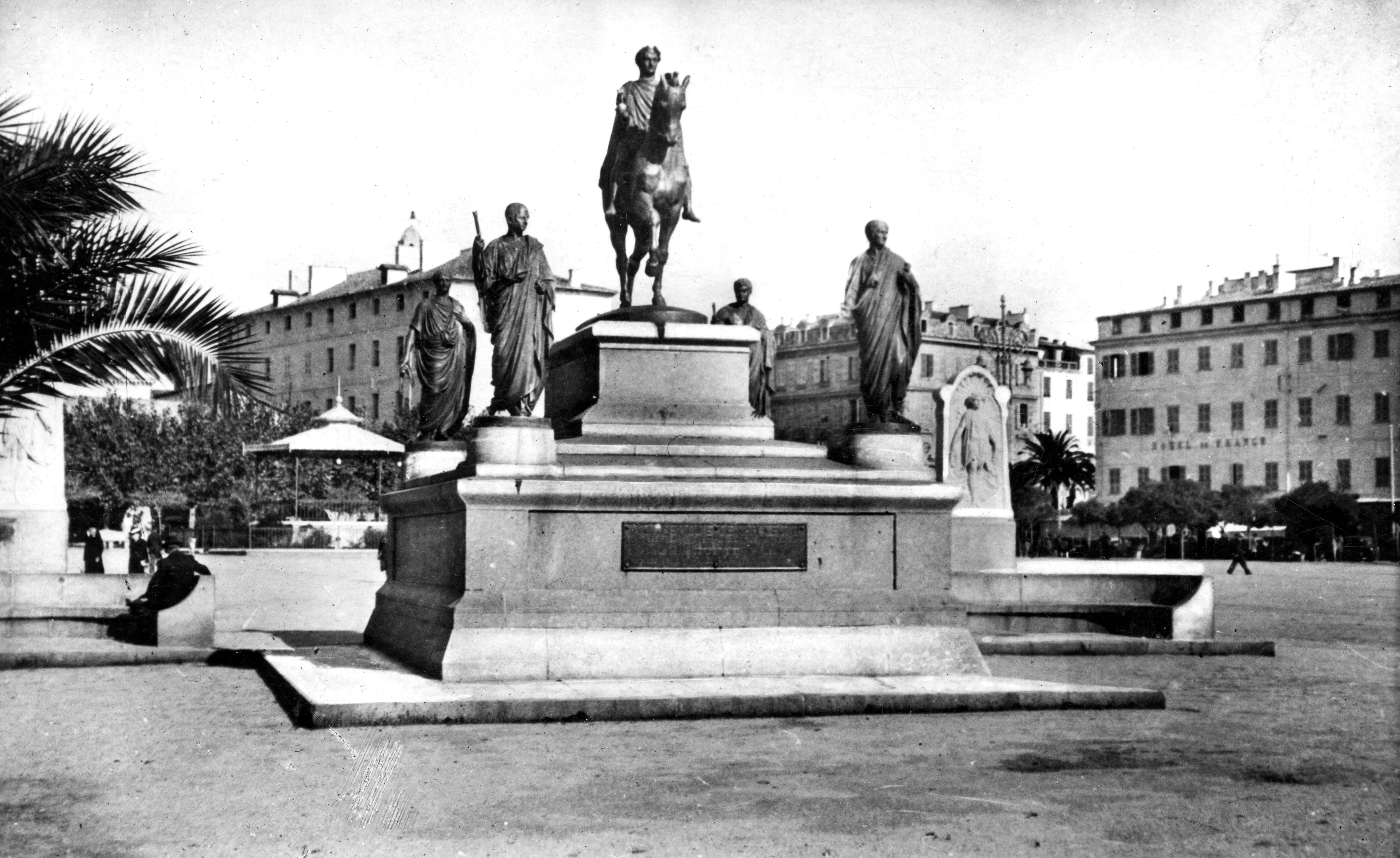 Mid-January 1944 found McCutchan on the island of Corsica, seemingly little affected by war. One day they were unexpectedly given 6 hour passes into Ajaccio, the capital, complete with transportation. Napoleon Bonaparte was born there. “In the center of the Place du Diamant, facing the bay, stands this [1865] statue of Napoleon with his four brothers. They say that the sculptor died of a broken heart because he had intended this monument to be his masterpiece, but when it was unveiled, the citizens of Ajaccio laughed. Even today they refer to it as ‘l’encrier,’ the inkstand.”