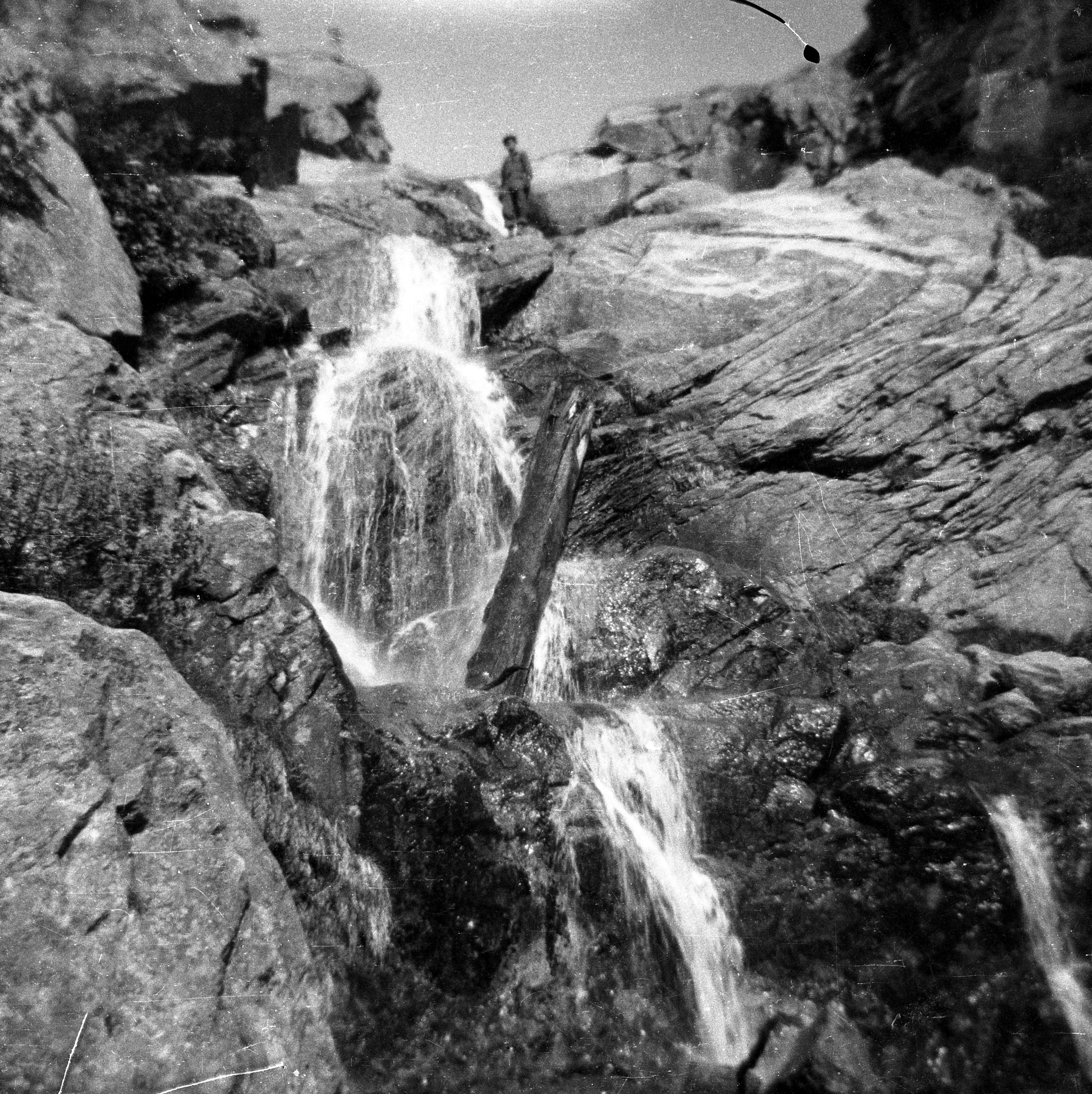 On January 15, 1944: “Today I have seen some of the most beautiful scenery one can imagine. It reminds me of what I would expect the Swiss Alps to look like. … Tonight we are bivouacking just at the edge of the snow line in a forest of giant pine trees, so dense that sunlight hardly penetrates. Mountain streams are bubbling and tumbling over boulders….” In his scrapbook he says, “These streams, fed by springs of melting snow, leapt and skipped over the rocky forest floor, filling the solitude with a water music that was a fitting accompaniment to the wind’s singing in the trees…forests below clung to the slopes like green cloaks that had slipped from the mountains’ shoulders. Tiny red-roofed villages appeared toy-like in the valley far below, and smoke-blue heaps of more mountains were piled against the distant horizons.” On June 4, McCutchan and a fellow soldier decided to try to climb Monte d’Oro, Corsica’s second highest peak. Good progress was made at first, following the mountain stream. “By the end of the second hour we reached a large glacier which had been hollowed out by a stream until a cave of ice had formed with huge icicles hanging from the ceiling….Soon after, we struck a spot that was almost impossible to scale bare-handed.” They wisely retreated.