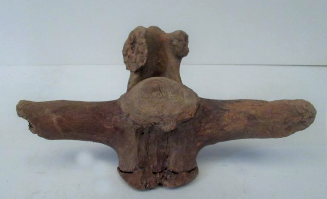 The first item is this lumbar vertebra, part of a mastodon unearthed on a farm near the community of Solitude in Posey County, Indiana, in 1966.