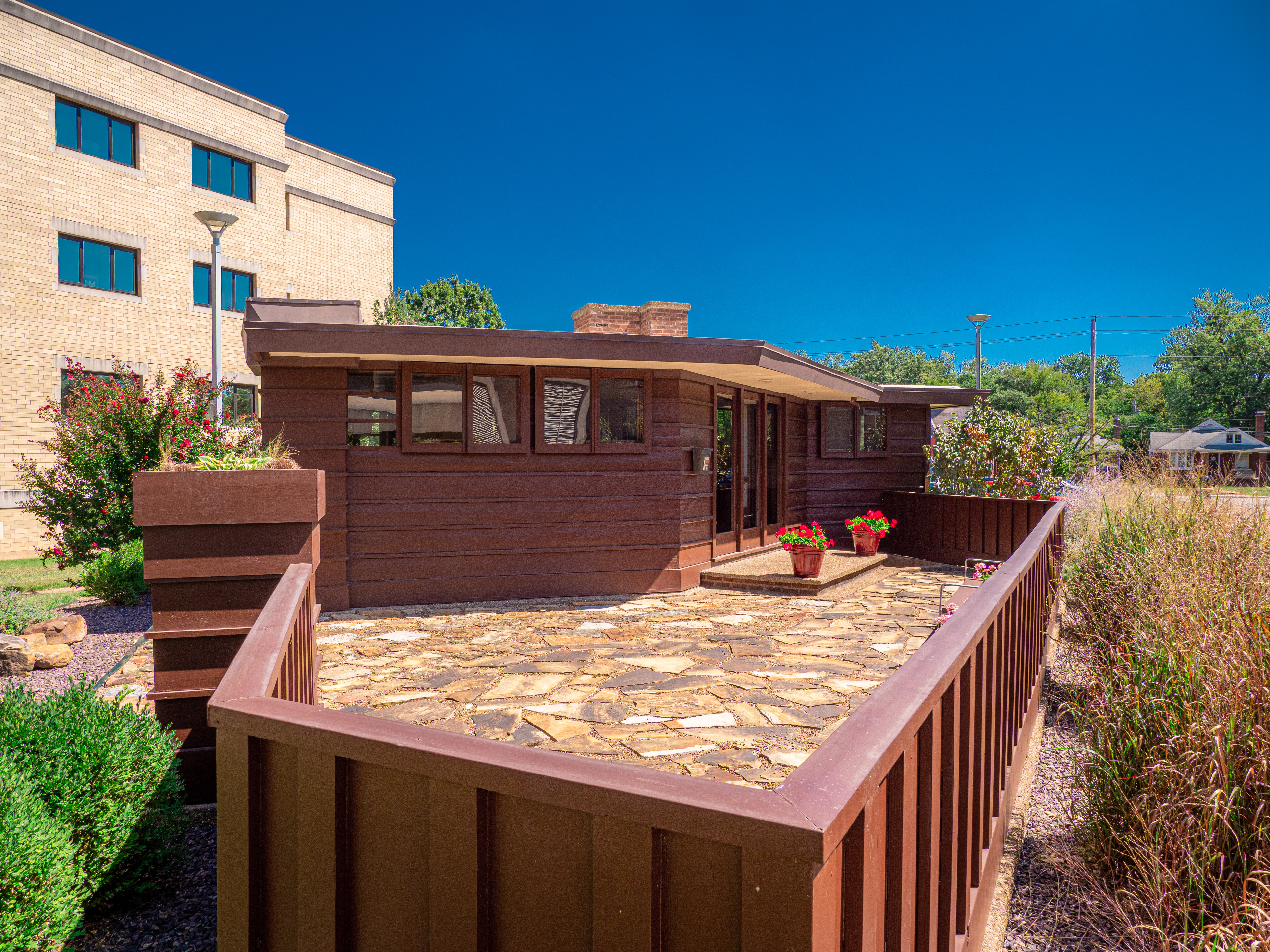 This unassuming 552 square foot residence is a remarkable early example of Usonian style architecture – an innovative residential style conceived by world-renowned architect Frank Lloyd Wright. Called the Peters-Margedant House, it was designed and built in 1934 by 22-year-old architect William Wesley “Wes” Peters, an Evansville native and Frank Lloyd Wright’s first student-apprentice. Wes married Mr. Wright’s daughter Svetlana in 1935 and left Evansville later becoming Mr. Wright’s chief engineer and right-hand-man, taking over his architectural practice (then called Taliesin Associated Architects) upon Wright’s death in 1959 – a role Wes held until his death in 1991. The house was moved to the UE campus in 2017.