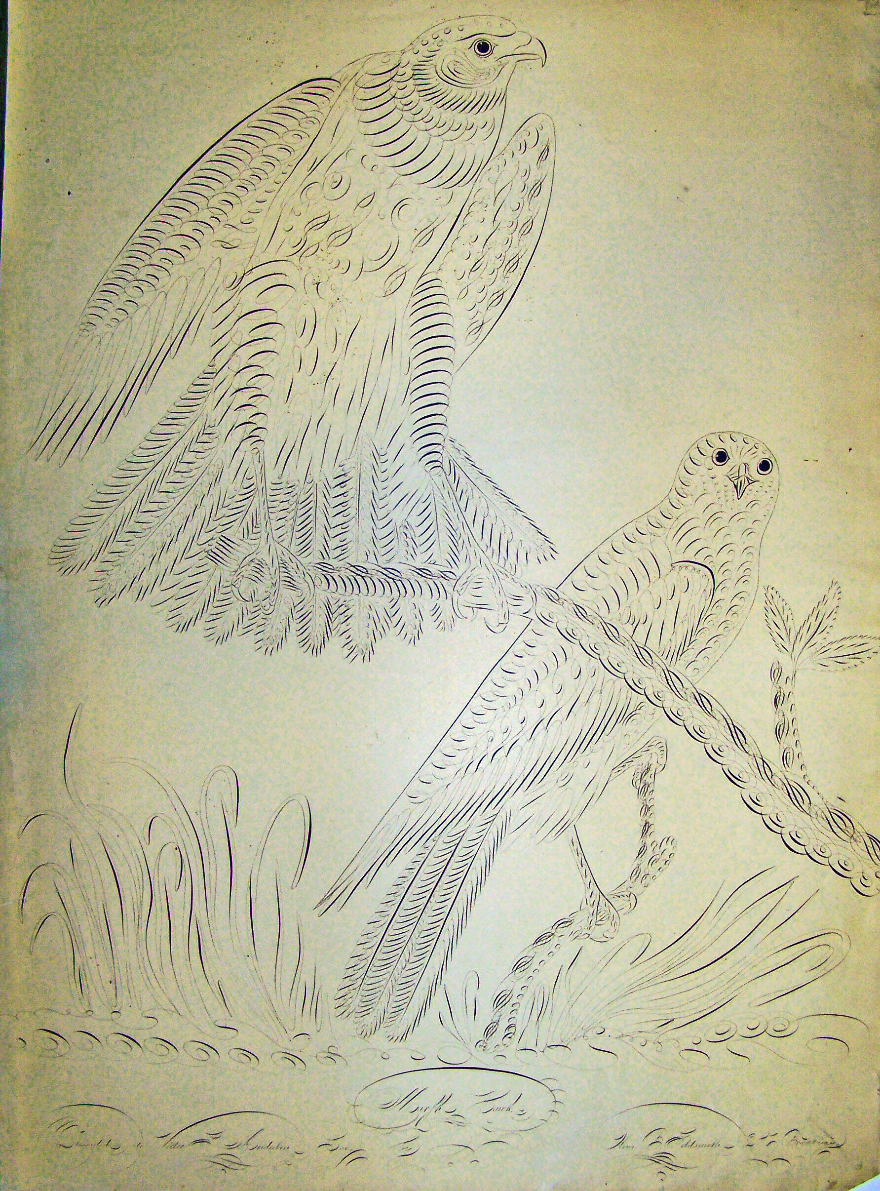 Chinese Silk Slippers- University of Evansville 268 VS Marsh Hawk Drawing- John James Audubon Museum 177