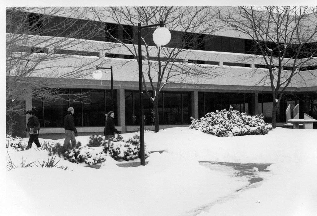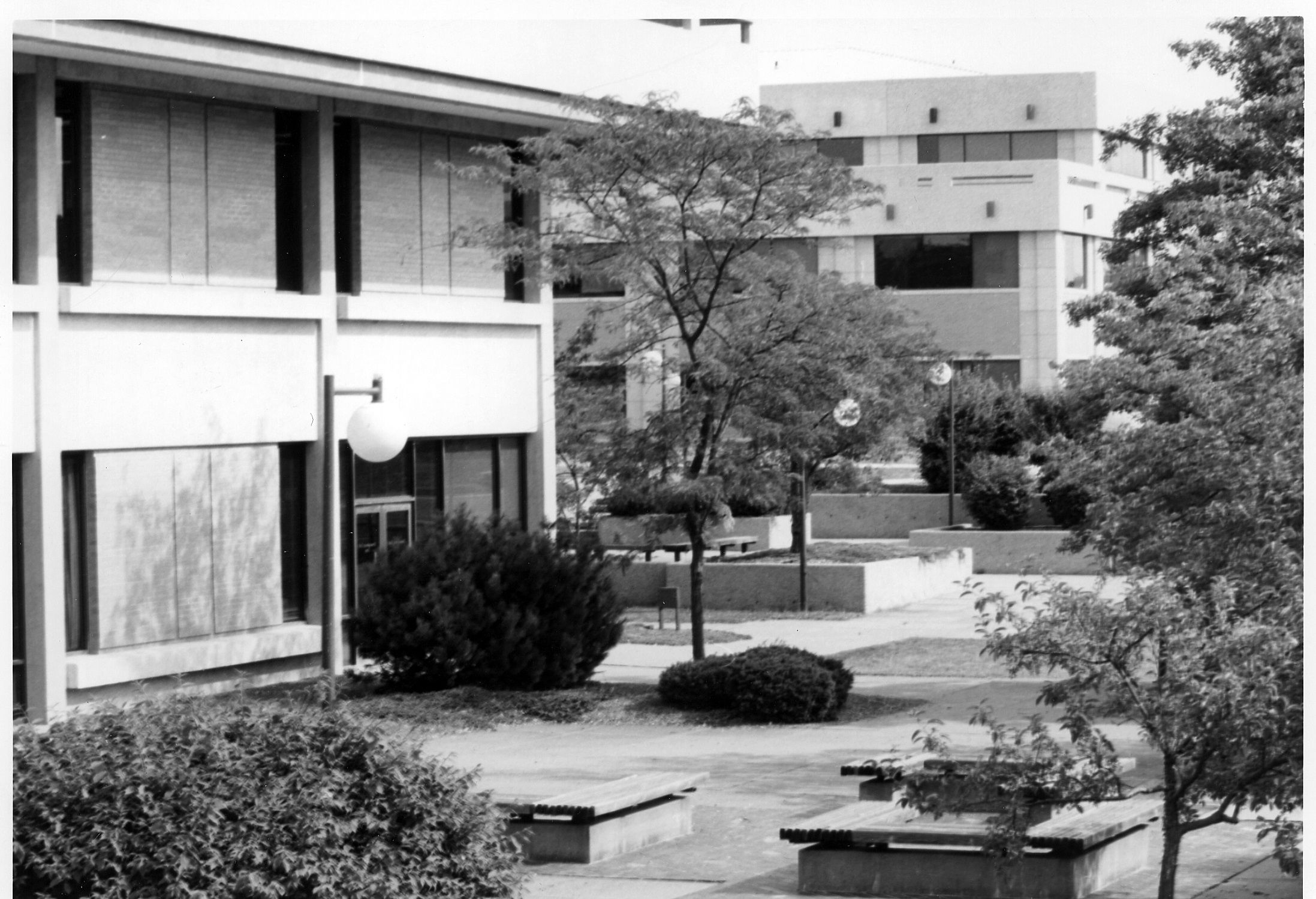 This is the original library building (1971-2005). In 1992, the University honored founding president David L. Rice by naming the building the David L. Rice Library. Parts of this building can still be seen today, particularly the first and third photographs below. The second photograph was the rear/staff entrance, now subsumed by the USI Performance Center.