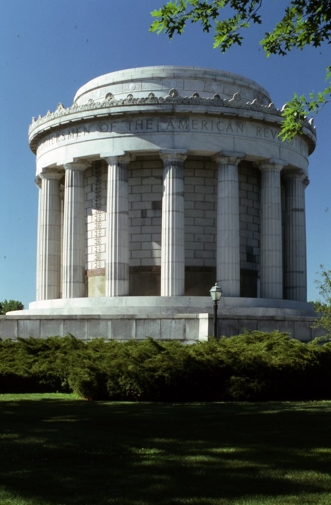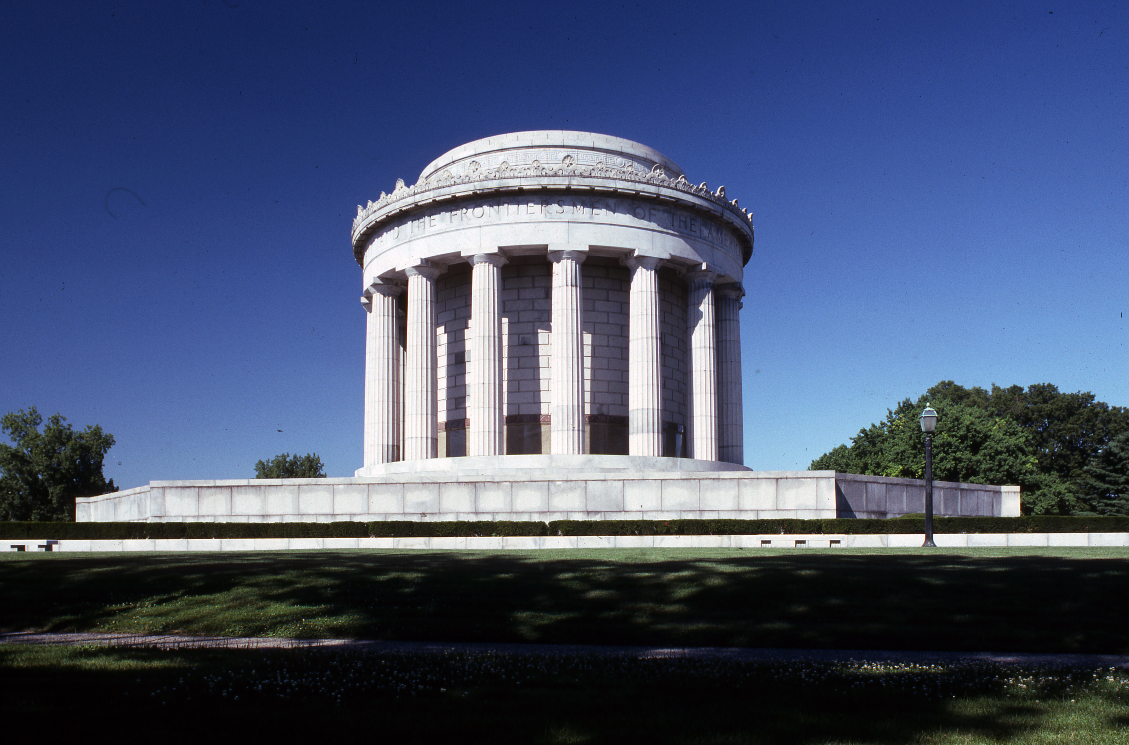 Also from the Eric Braysmith Collection, MSS 124, are these images of the George Rogers Clark Memorial At the George Rogers Clark National Historic Park in Vincennes, IN. On February 25, 1779, American Colonel George Rogers Clark captured the British Ft. Sackville. “Although unable to achieve his ultimate objective of capturing Detroit, Clark successfully countered British and Indian moves during the remainder of the conflict. The young Virginian had prevented the British from achieving their goal of driving the Americans from the Trans- Appalachian frontier. As a result of Clark’s brilliant military activities, the British ceded to the United States a vast area of land west of the Appalachian Mountains. That territory now includes the states of Ohio, Indiana, Illinois, Michigan, Wisconsin and the eastern portion of Minnesota.” The fort’s exact location is unknown, but it is believed to be close to where this memorial was constructed in 1931-1933.