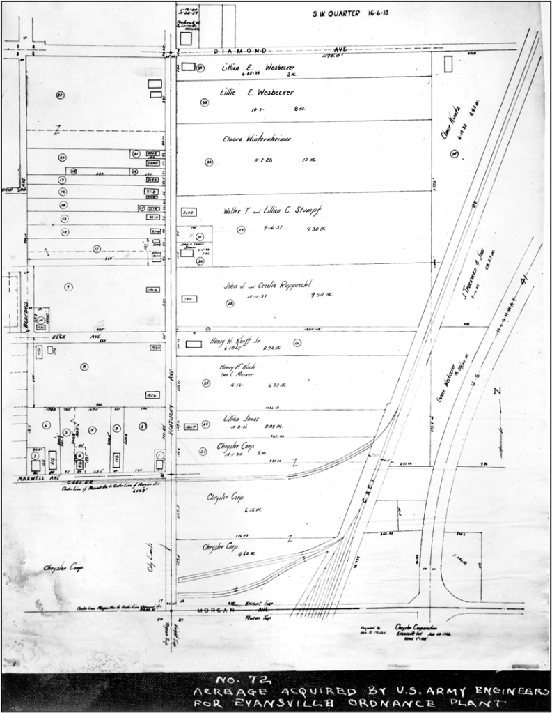 Here are some photos of the Evansville plant, all from UASC MSS 253, the Raymond Frederick Diekmann Chrysler Wartime Collection. Diekmann oversaw plant security at the Chrysler/Evansville Ordnance plant.