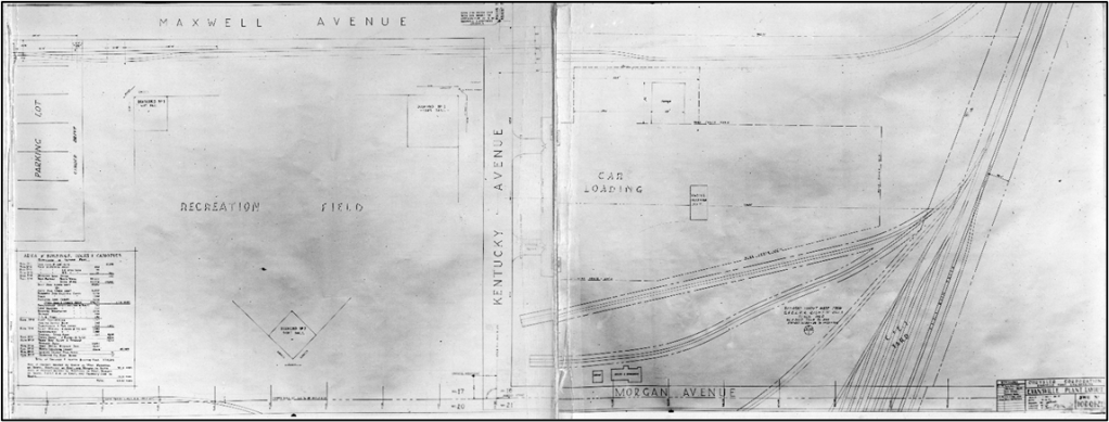 This is a map of the original Chrysler Plymouth plant itself. The image below is one long strip, too long to use here, so it’s been divided in half, with the second part below adjoining the top image to the right. All of this space was retrofitted for defense work, in addition to being greatly expanded and additional buildings constructed. For example, the recreation field seen here would have been taken over for defense work.