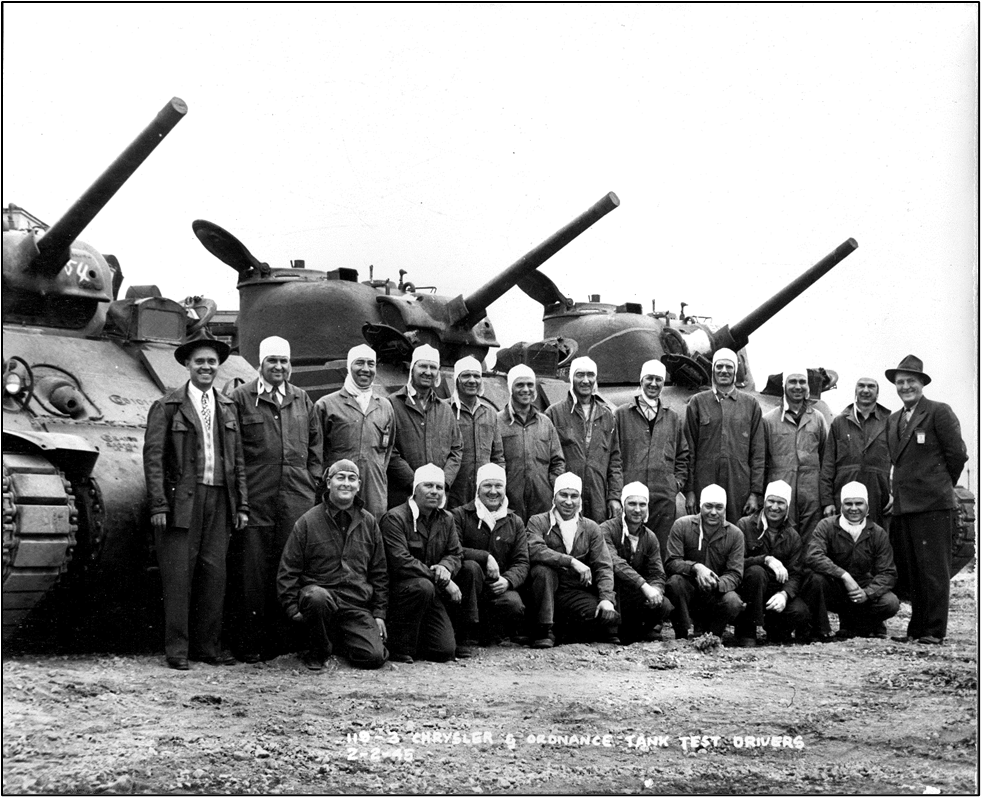 Chrysler president W.T. Keller was certain that the Evansville plant could meet any demand. Soon, Chrysler vice president Charles L. Jacobson, tasked with organizing and running the new operation, got an Army Ordnance team to inspect and approve the Evansville plant and a letter of intent for the making of 5,000,000 .45 caliber cartridges a day. One week later, Army Ordnance phoned Jacobson and increased the order to 7,500,000 rounds a day. Within twenty-four hours Army Ordnance again called and gave Jacobson another change order – increasing production to 10,000,000 rounds a day. Before the month ended, that number had jumped yet again to 12,500,000 rounds. Jacobson had doubts such an order could be fulfilled, but with Keller telling him to make it happen, Jacobson worked out a co-production agreement with Sunbeam, who had a plant near Evansville. On Feb. 18, 1942, Washington’s Birthday, the formal contract with the government was signed. The transformation of the Evansville plant from assembly line to arsenal began the next day. Cartridges made at the Evansville arsenal had seven parts, passed through 48 processing operations, and had to survive 334 quality control inspections. On June 30, 1942, the first bullets produced there were test fired. From June 1942 to April 20, 1944 when the contract ended, Chrysler’s Evansville arsenal produced 96 percent of the military’s .45 caliber cartridges: 3,264,281,914 rounds. Rejection rate of cartridges was less than .1 percent of production. It also produced almost a half-billion .30 caliber cartridges, hundreds of thousands of specialty rounds, reconditioned 1,662 Sherman tanks, rebuilt 4,000 Army trucks, delivered 800,000 tank grousers (track extensions for use in mud), and was preparing to make 7 million fire bombs when the war ended.[iv]