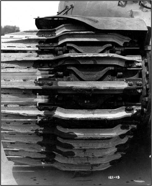 To the right is a close-up of a tank with one of the 800,000 grousers that Chrysler also manufactured. A grouser is an extension added to the track or tread to provide more traction in mud and other adverse conditions.