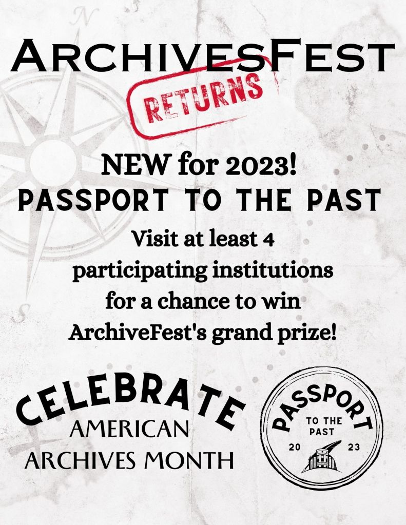 In celebration of American Archives Month, and Indiana Governor Holcomb’s declaration of October 2023 as Indiana Archives Month, University Archives and Special Collections (UASC) is launching Passport to the Past. Participants are encouraged to travel to at least 4 participating institutions to get a special stamp on their (provided) passport. Once you’ve gathered at least 4 stamps, you will be eligible to enter your passport in a prize drawing from the UASC. Passports may be downloaded here or picked up at UASC. Passports must be turned by October 31, 2023 by noon. The drawing for the winner will be held in UASC at 4 p.m. that day.