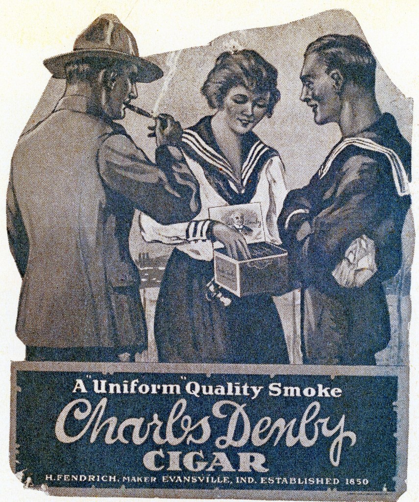 The company flourished, with warehouses opening in Pennsylvania, Ohio, and Wisconsin, in addition to those in Evansville. Having grown up in the business, John knew it intimately. He maintained quality standards and improved processes by developing and patenting “new techniques for removing harsh irritants in tobaccos to make his cigars milder and mellower, and to give them a most inviting bouquet to smokers.”ii Multiple sources speak of his “aggressive salesmanship.” In 1889 Fendrich only employed 40 cigar workers, but under John’s leadership it grew to employ 3,000 cigar makers. According to Hyman, Fendrich grew to become the largest of Indiana’s over 600 factories, and 100,000 cigars were produced daily. The company history also stresses the growth in the production of custom-made cigars and labels. Hyman counters with: “Cigar factories that created dozens of “custom” brands generally kept their tried and true blends constant, changing only the name and label to suit the customer. Sellers desiring a “house” or “custom” brand selected a particular manufacturer (out of 10,000+ available) because they like the taste and appearance of their cigars, and usually wanted few, if any, changes. Minor changes like wrapper color, dipping the cigar’s head in a sweetening agent or spraying the blend with various flavorings made for the easiest changes. Fendrich’s profusion of brands were most likely a combination of custom blends for some, minor tinkering like described above for other customers and packing their standard brands under a custom label for yet others. How many of the brands and labels were actually created by the H. Fendrich company itself not recorded.”iii