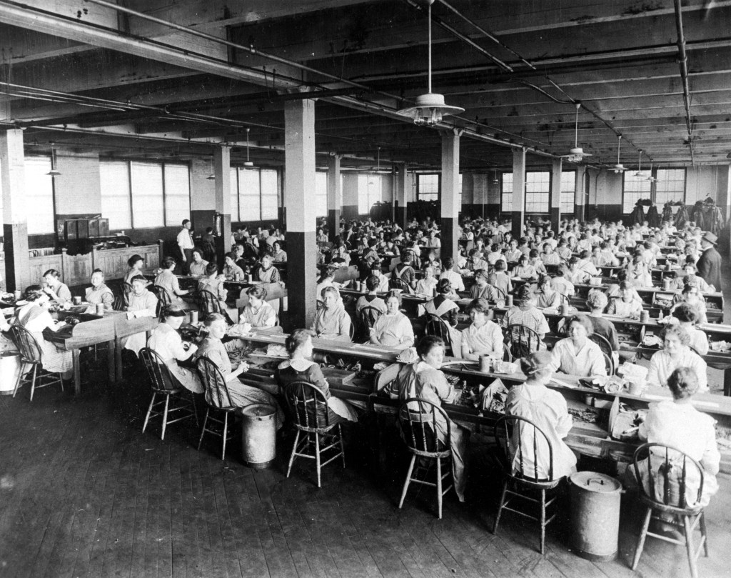 Male and female employees at the Fendrich Cigar Factory at 101 Oakley St., circa 1912. UASC MSS MSS 216-008, the Maxine G. Akins Collection