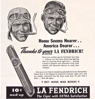 During World War II, Fendrich continued to provide cigars for the troops. “Tens of millions of Fendrich-made cigars, approximately 30% of production, were packed in special wooden cases with waterproof liners designed for dropping during bad weather or for floating ashore to troops on remote Pacific islands with no harbor facilities.”ix The company received this citation from the War Department in February 1945: “We know that our soldiers appreciate the convenience of obtaining a good cigar when they want it….your cooperation in maintaining all-out production will continue to bolster the morale of American troops overseas.”x Furthermore, the factory’s machine shop manufactured precision parts for local war industries.