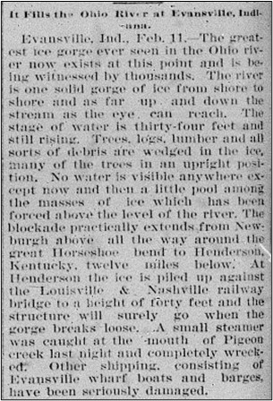 In addition to the massive flood on the Ohio River in 1937, 1936 and 1937 had very cold winters and the rivers (Wabash and Ohio) froze over both years.