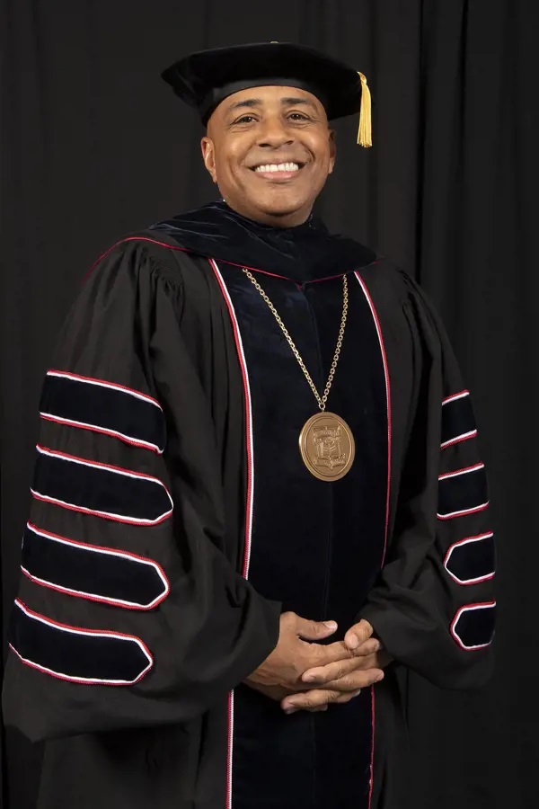 Box 4: (Left): The Performance Center opened in 2015. Image from USI website; (Center): Interior of the Performance Center, showing its nearly 300 seats. Image from USI website; (Right) Inauguration portrait of USI’s fourth president, Dr. Ronald S. Rochon, on April 5, 2019. Image from USI website.