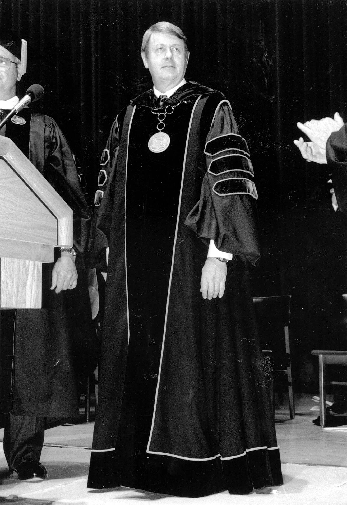 “I look forward to the day in the future when being an alumnus of the University of Southern Indiana will mean every bit as much as it does to be an alumnus of the greatest universities, not just in Indiana, but in the entire United States of America. I believe the spirit which prevails, which has made this possible today will most certainly achieve the standard, and that is the standard to which we can all aspire. I thank you for your dedication. I thank you for the inspiration which has made the University of Southern Indiana and which is going to make it a great university.”