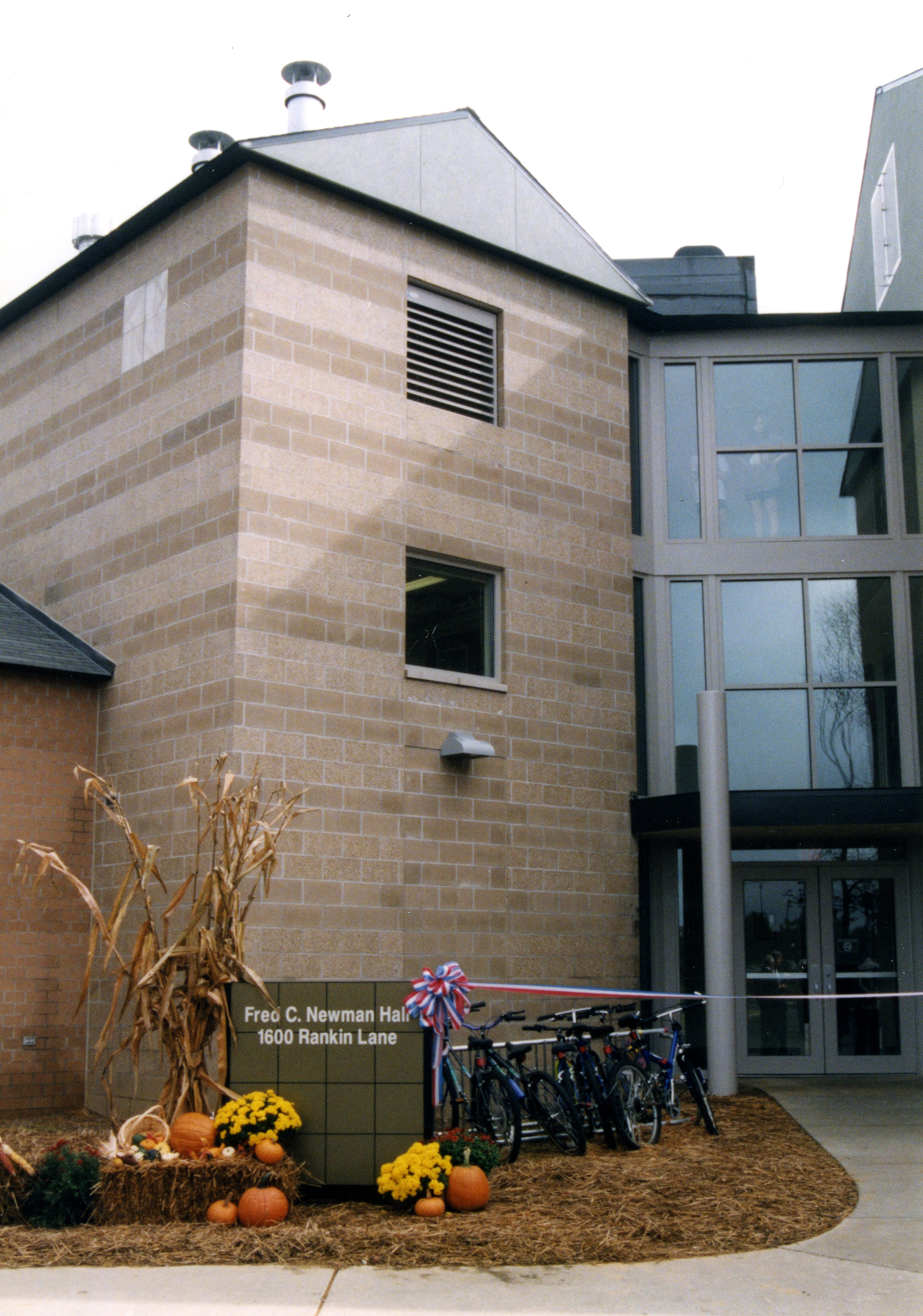 Box 3: (Top left): The Health Professions Center opened in 1994. UA78, University Photographs Collection UP02901; (Top center): In 1993, the founding president of ISUE/USI Dr. David L. Rice announced his retirement. His successor, Dr. H. Ray Hoops, was inaugurated in 1995 as seen here. After nearly 30 years in existence, USI had just its second president. UA78, University Photographs Collection UP01697; (Top right): Also in 1995, USI’s men’s basketball team won the NCAA Division II championship. Image courtesy of USI Photography & Multimedia; (Middle left): 1999 saw the addition of the first suite-style residence hall, Newman Hall. UA78, University Photographs Collection UP05568; (Middle center): The Liberal Arts Center opened in 1999. UA78, University Photographs Collection UP02792; (Middle right): These magnets were distributed to publicize and celebrate the opening of the new David L. Rice Library on July 23, 2006. Image from personal collection; (Bottom left): USI installed its 3rd president, Dr. Linda Bennett (left) on October 15, 2009. Here she is alongside Dr. David L. Rice (middle) and Dr. H. Ray Hoops (right). Image courtesy of Photography and Multimedia; (Bottom right): October 10, 2010 saw the ribbon cutting and open house for the Business and Engineering Center. Image courtesy of Photography and Multimedia.