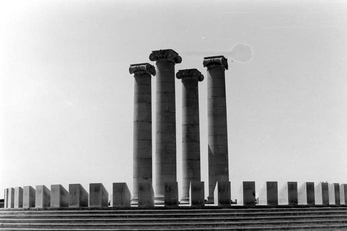 In 1965 this facility was razed for the construction of downtown Evansville’s Civic Center complex. But all was not lost! The image below is a close up of the columns, cropped from MSS 228-0178, The Sonny Brown Collection. It dates to 1960.