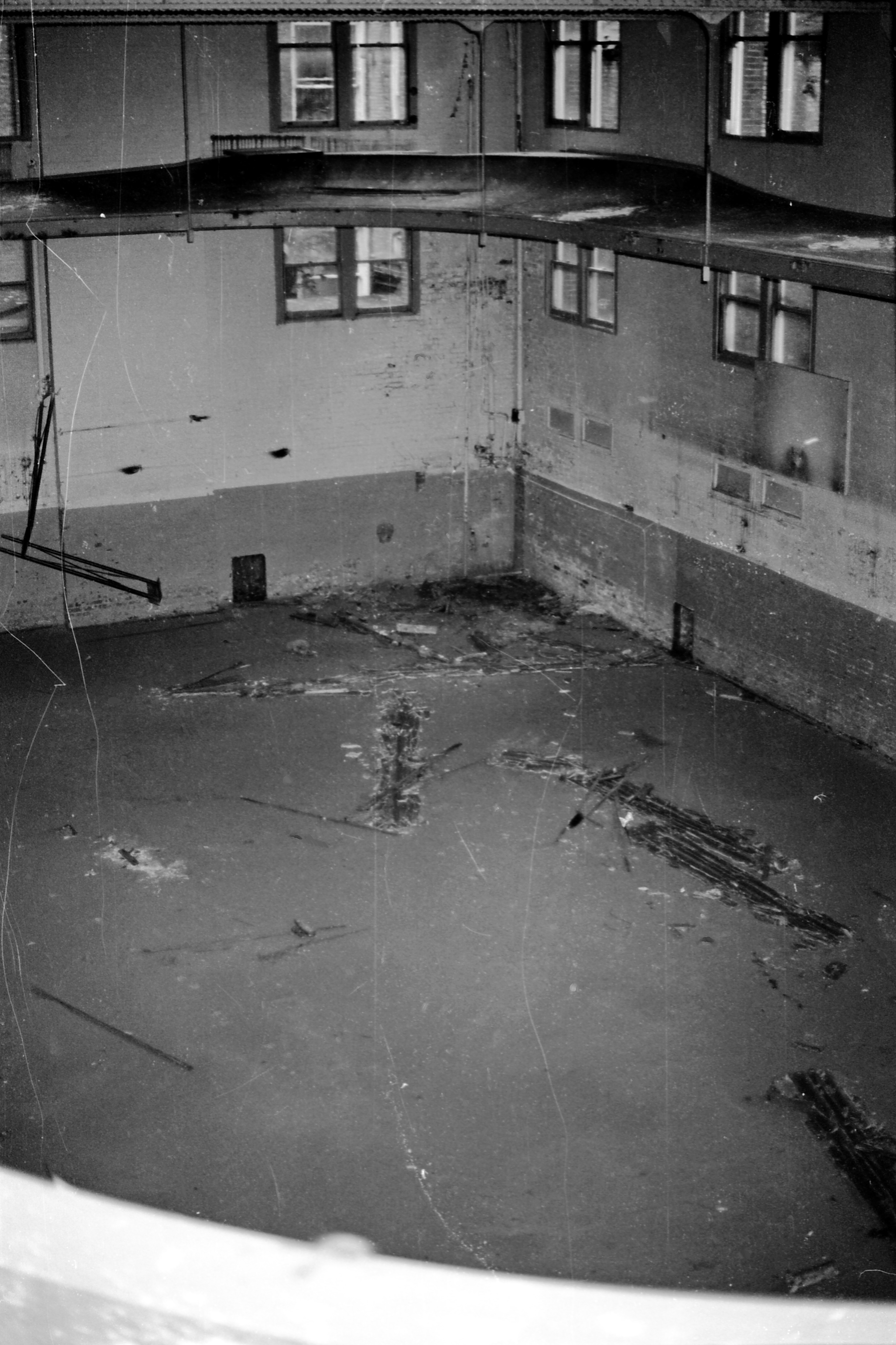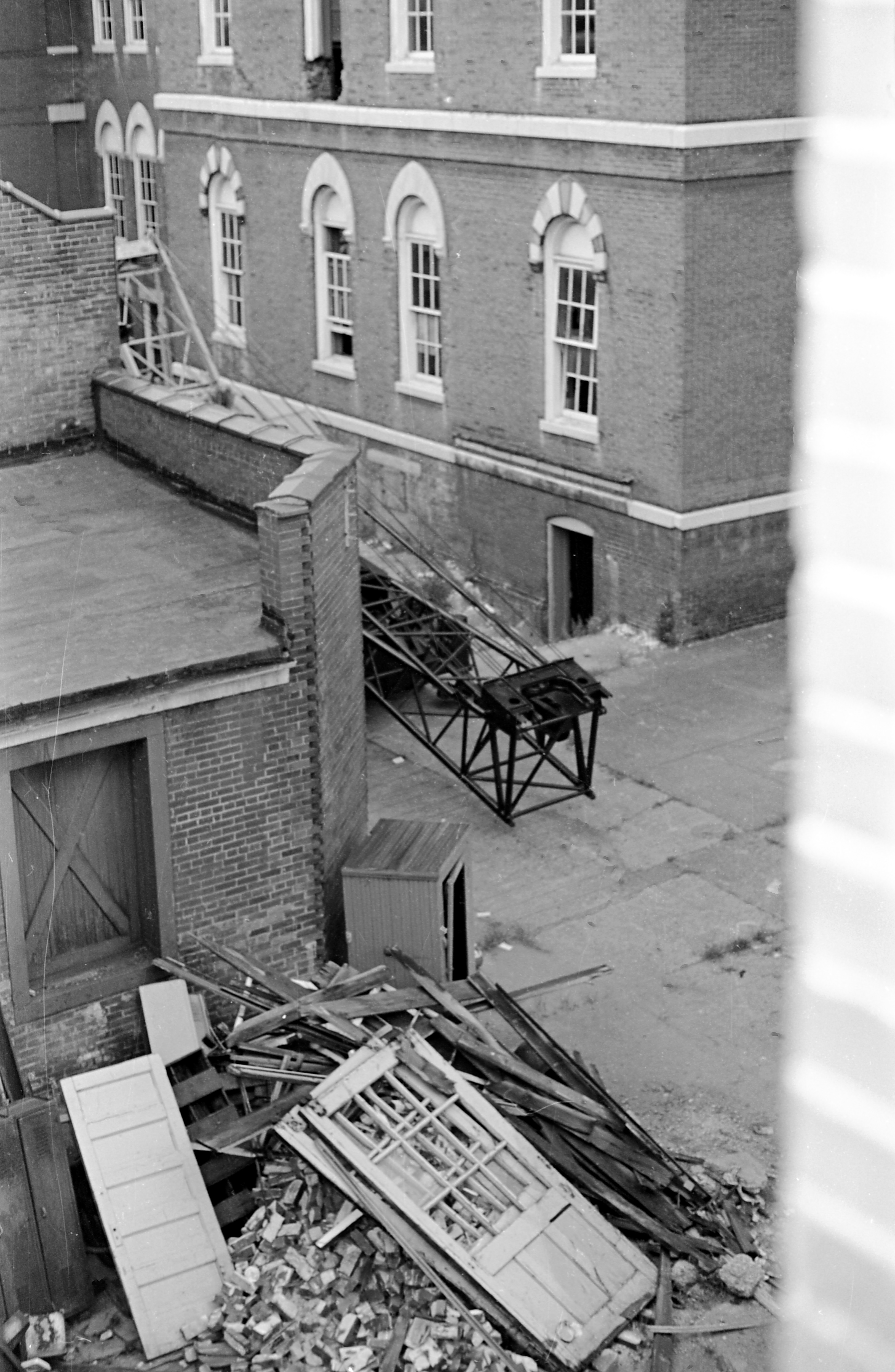 Hallway during demolition. MSS 034-0301, the Gregory T. Smith CollectionInterior, possibly the gymnasium, during demolition. MSS 034-0302, the Gregory T. Smith CollectionRooftop during demolition. MSS 034-0304, the Gregory T. Smith Collection