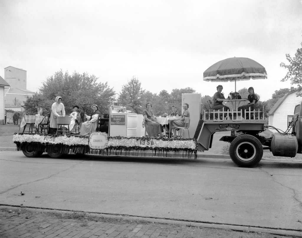 The images above and below are both dated August 11, 1962 and are part of a parade celebrating the sesquicentennial of Evansville. Both were photographed on Riverside Dr.