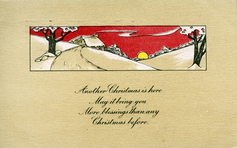 You’ve made it to the end of the Fall 2024 semester….congratulations! Finals are behind you or soon will be. Hope they went well, and that you are able to enjoy a well-earned holiday. In the meantime, enjoy these vintage postcards for Christmas and the New Year.
