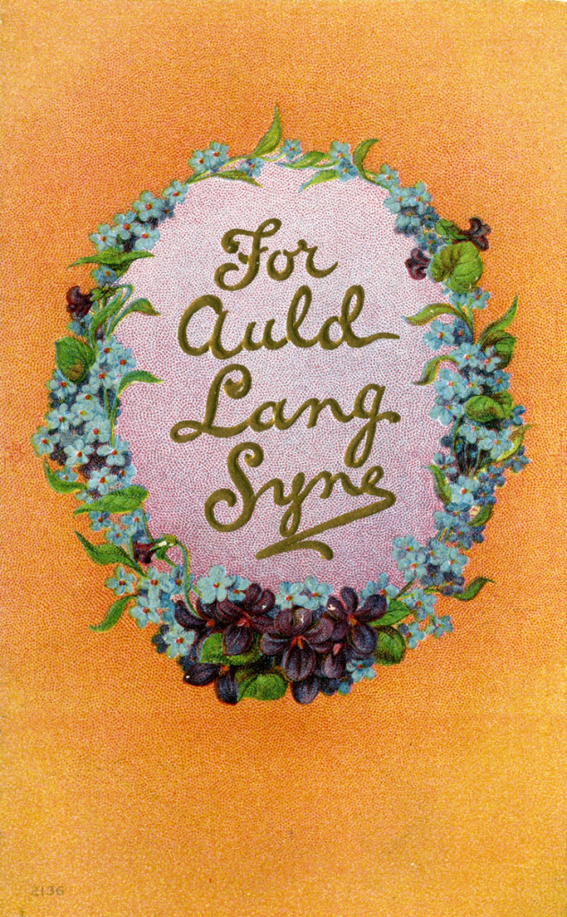 Moving on to wishing you a Happy New Year of 2025, let’s take a look at a few vintage New Years postcards. The first (at least the theme) is Scottish, based on an ancient song that Robert Burns set to music in the 1780s. “The phrase ‘auld lang syne’ roughly translates as ‘for old times sake’, and the song is all about preserving old friendships and looking back over the events of the year.” The first verse and chorus (Scottish language version) is:
