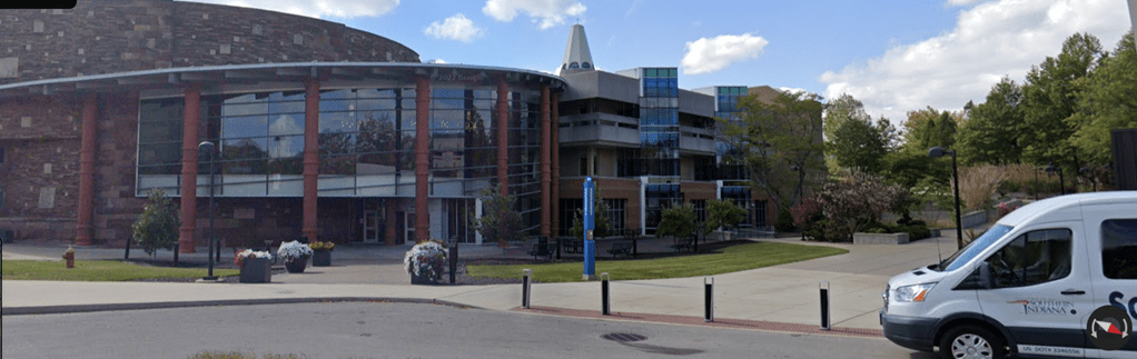 First, just a quick history for anyone not familiar with the history of the University of Southern Indiana. Way back in 1965 we started as a regional campus of Indiana State University, thus called Indiana State University Evansville, or ISUE. There was no campus as we know it today; early classes were held in an old (built in 1876) building at 112 N.12th Ave. called Centennial School. Fast forward to 1968, with the campus under construction. Here’s an image of the first president, Dr. David L. Rice, walking by a muddy field to his office.