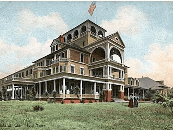 The original Hotel Tybee looked like the image to the left. “In 1889, the original Hotel Tybee was built and offered rental cottages and a world-class beachfront dancing pavilion. Tybee Island was accessible through an 18-mile train ride from Savannah in this period.” On July 31, 1909 it was completely destroyed by fire; fortunately, no one was injured. It was rebuilt in 1911 and stood as seen in first image above until 1961. It was remodeled/rebuilt again in 1989 and finally in 2015.