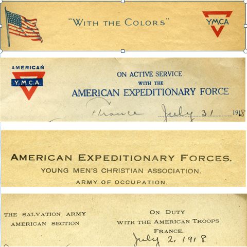 Apparently the stationary was supplied by different groups. Take a look at these four examples of letterhead from Vernon’s letters, here supplied by the YMCA and the Salvation Army. It’s clear that the writer took whatever stationary he could find.