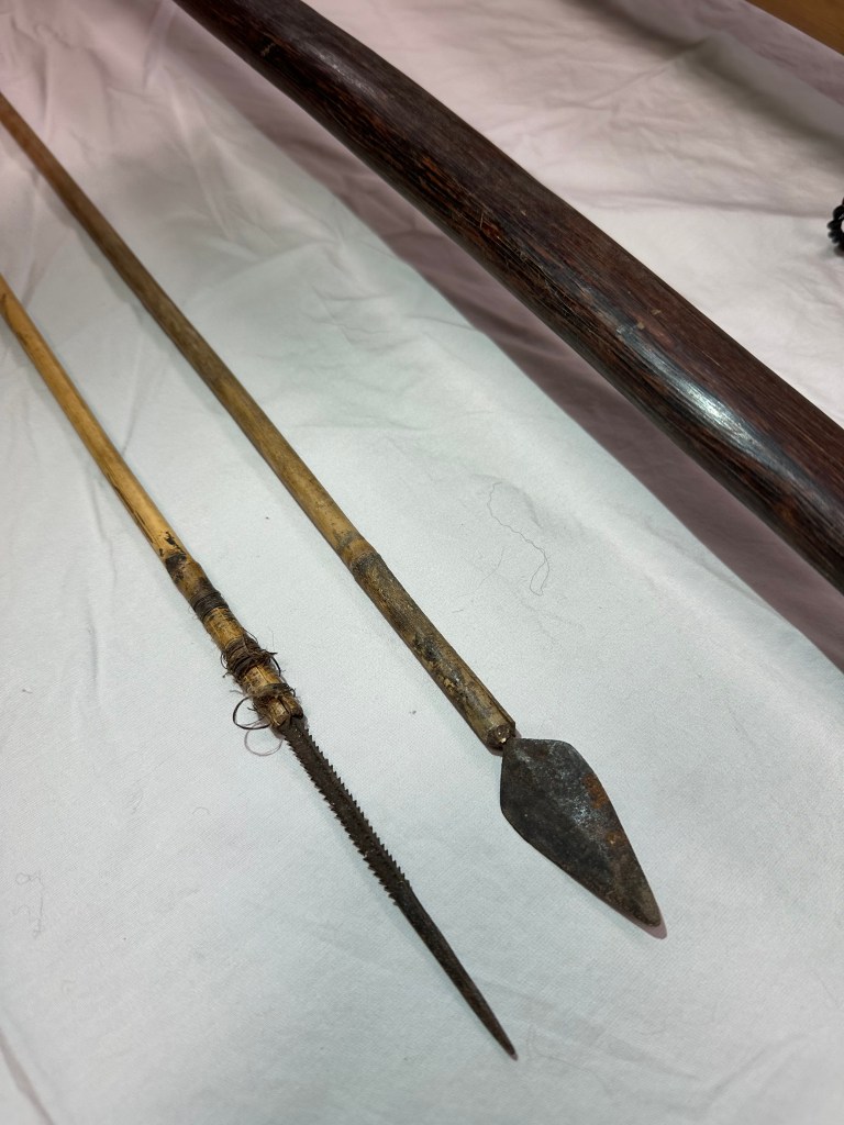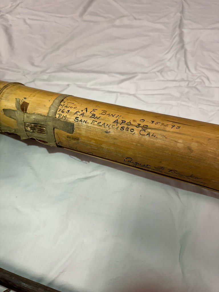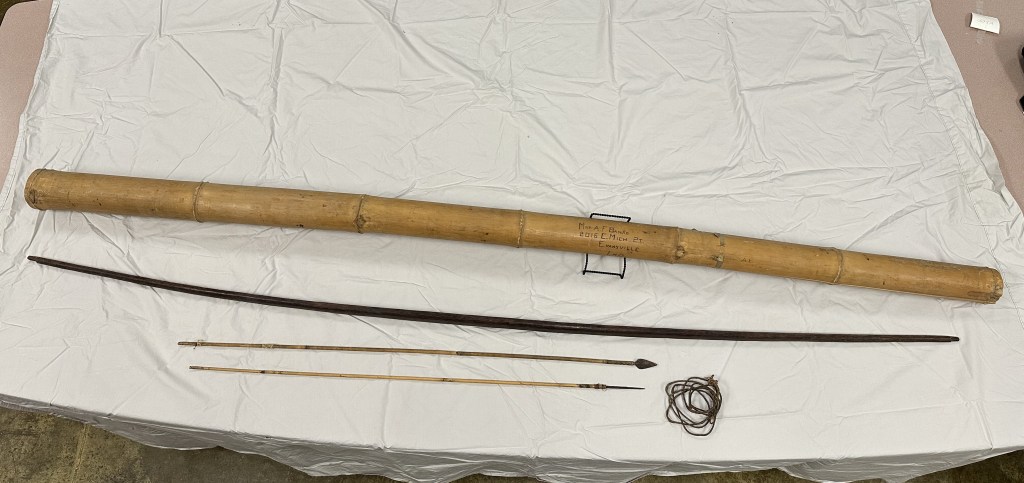 The second item is this bow and arrow handcrafted in the Philippines and sent home in a hollow bamboo shoot.