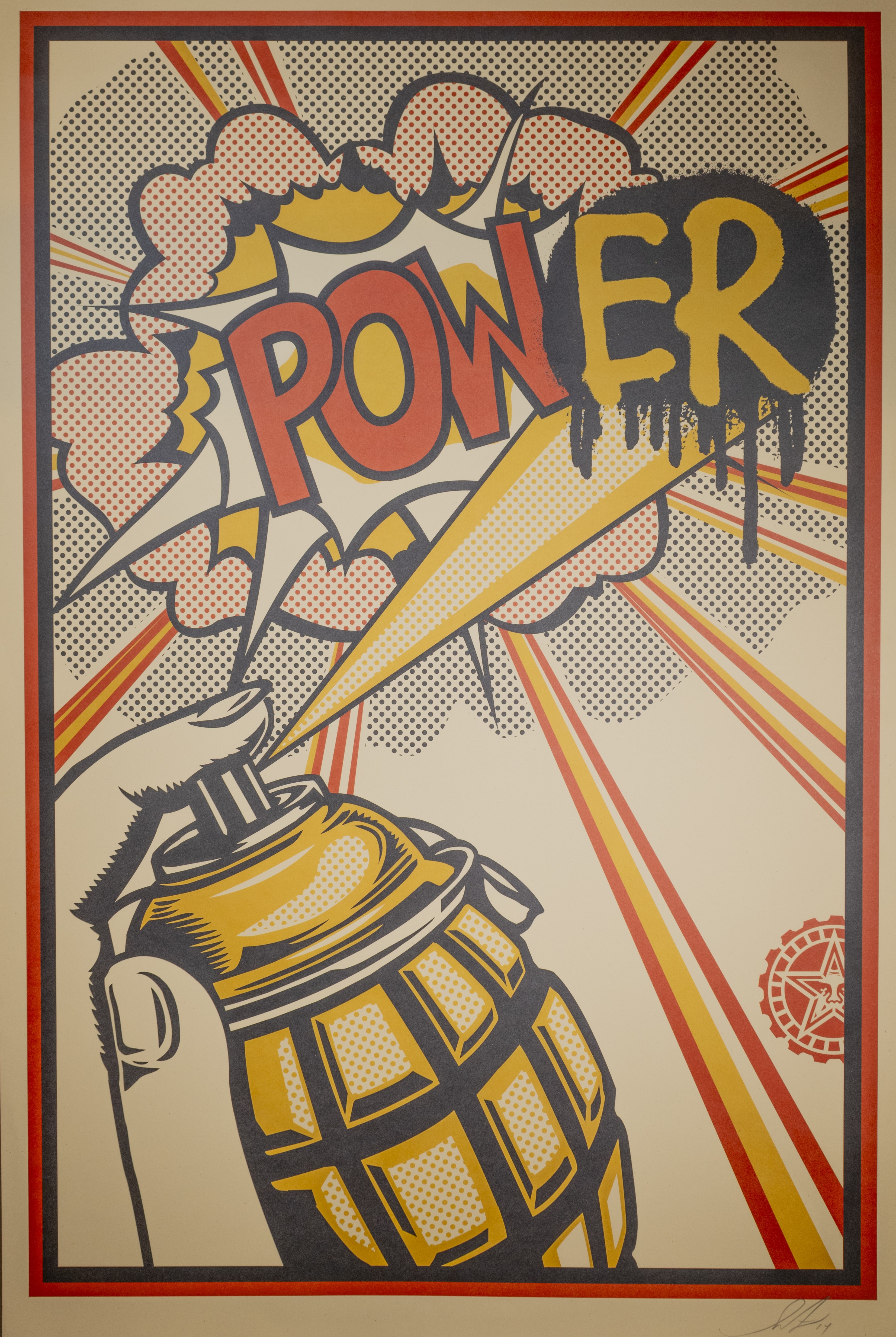 The first item is POWer, 2013, Offset lithograph, Shepard Fairey. A major figure of the contemporary street art movement, Shepard Fairey’s 2008 “Hope” campaign poster for President Barack Obama encapsulates a number of the artist’s recurring concerns, including propaganda, portraiture, and political power.