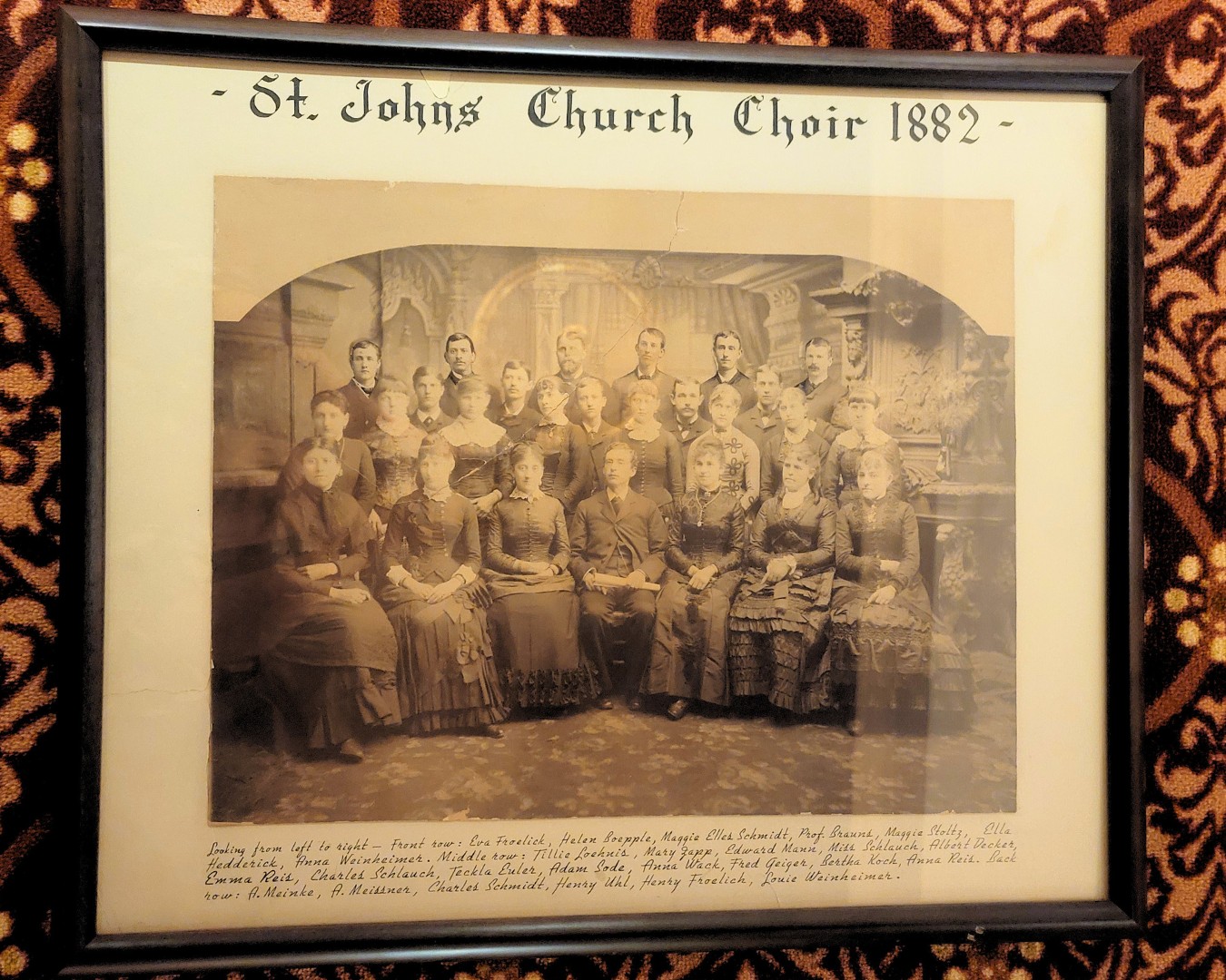 The first item is this 1882 portrait of the St. John’s German Evangelical Church Choir. St. John’s Parish on 321 NW 3rd Street, was founded in 1850 amid a wave of German immigration. Originally an Evangelical Protestant church, they became part of the United Church of Christ (UCC) after several denominational mergers throughout the 1900s.